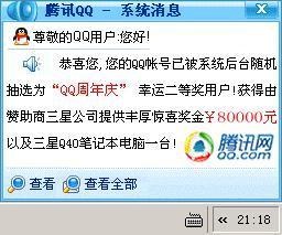 現象:這(zhè)類廣告木(mù)馬非常邪惡,比如人(rén)們常用(yòng)的(de)“我的(de)電腦(nǎo)”圖标,它給篡改成“馬上賺錢”,點開就是一個(gè)流氓網址導航,以至于一些受害網友都不知該如何找到硬盤中的(de)文件;還(hái)有的(de)是對(duì)浏覽器做(zuò)些“手腳”,使IE無論打開什(shén)麽網站都會彈出Flash廣告;甚至在桌面右下(xià)角假冒QQ中獎消息,把受害人(rén)騙到釣魚網站。分(fēn)别如圖4、圖5、圖6所示: