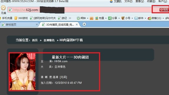近日,一段港姐張淨思全裸煮飯的(de)視頻(pín)在網絡上風傳,引起了(le)諸多(duō)網友的(de)關注和(hé)搜索。有消息稱港姐張淨思曾在《3D肉蒲團》中露臉,或許這(zhè)也(yě)與《3D肉蒲團》的(de)炒作有關。據360安全中心數據顯示,近期已經有超過20000名網友因搜索下(xià)載“3D肉蒲團”、“張淨思”等熱(rè)詞内容而導緻電腦(nǎo)中病毒木(mù)馬,360安全專家呼籲廣大(dà)網友在搜索點擊網絡熱(rè)詞,尤其是鏈接至可(kě)疑網站時(shí)務必開啓電腦(nǎo)裏的(de)安全軟件,防止個(gè)人(rén)電腦(nǎo)受到侵害。