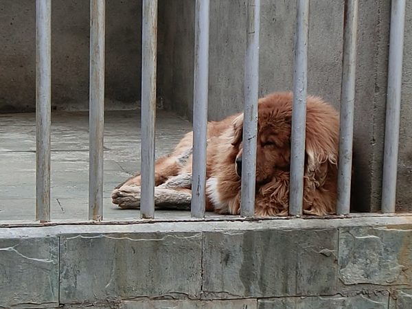 匆匆吃(chī)過9點鐘(zhōng)的(de)午飯,繼續上路,在中午11點半趕到黃(huáng)龍景區(qū)休息點,關著(zhe)很多(duō)藏獒供遊客參觀,