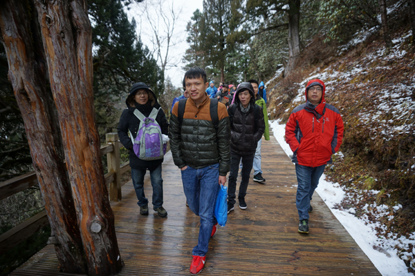一路步行,山上的(de)積雪(xuě)已經很多(duō)了(le)