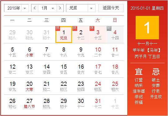 2015年1月(yuè)1日至1月(yuè)3日調休,放假3天,1月(yuè)4日(星期日)上班!