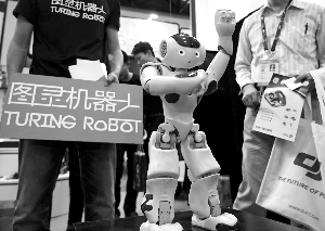 觀衆在觀看一款語音(yīn)識别智能機器人(rén)。新華社發