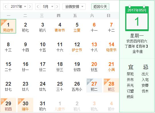2017五一勞動節放假安排