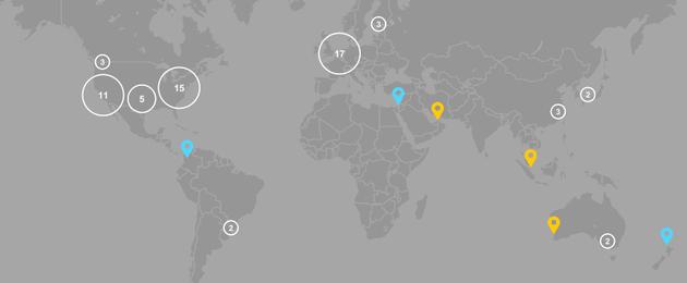 全球測試自動駕駛汽車城(chéng)市分(fēn)布圖