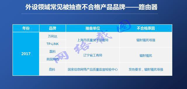 據最新一份報告《2018年度3·15數碼産品質量關注度報告》,指出國内最受歡迎的(de)路由器不合格産品如下(xià)。