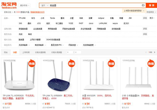 截至目前,各大(dà)網站數據顯示TP-LINK仍然是銷量較大(dà)的(de)品牌。