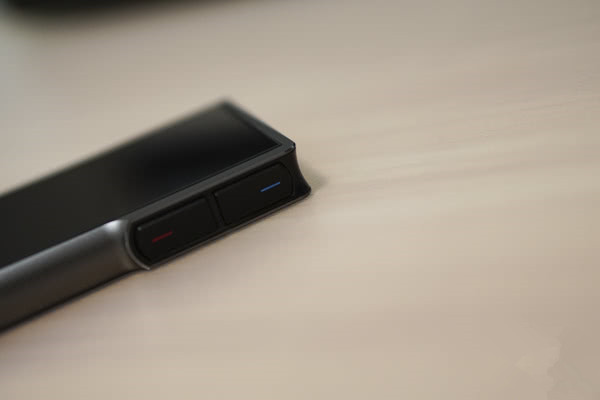 搜狗旅行翻譯寶的(de)外形設計和(hé)索尼黑(hēi)磚(NW-WM1A)音(yīn)樂(yuè)播放器頗有幾分(fēn)神似之處。它的(de)機身爲磨砂金屬材質,拿在手裏的(de)觸感非常舒适,黑(hēi)灰的(de)配色也(yě)顯得(de)沉穩大(dà)方。