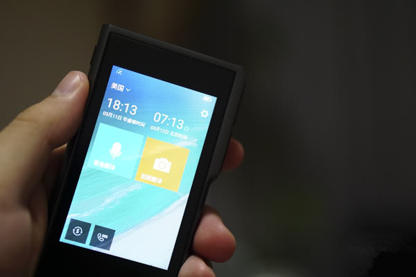 搜狗旅行翻譯寶使用(yòng)的(de)是哪款操作系統并不得(de)而知,但UI設計和(hé)微軟Windows Phone如出一轍。點亮屏幕,你會看到兩個(gè)大(dà)大(dà)的(de)磁貼,分(fēn)别是語音(yīn)翻譯和(hé)拍(pāi)照(zhào)翻譯,此外屏幕上還(hái)會顯示北(běi)京時(shí)間和(hé)當地時(shí)間,以及貨币轉換和(hé)緊急電話(huà)等信息。