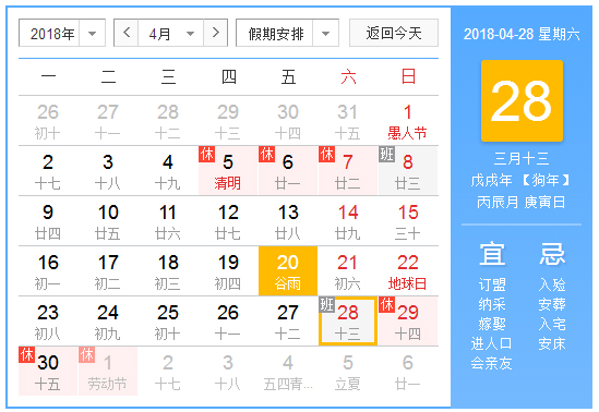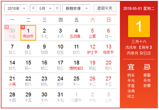 2018年4月(yuè)29日至5月(yuè)1日(星期二、“五一”國際勞動節)放假,共3天