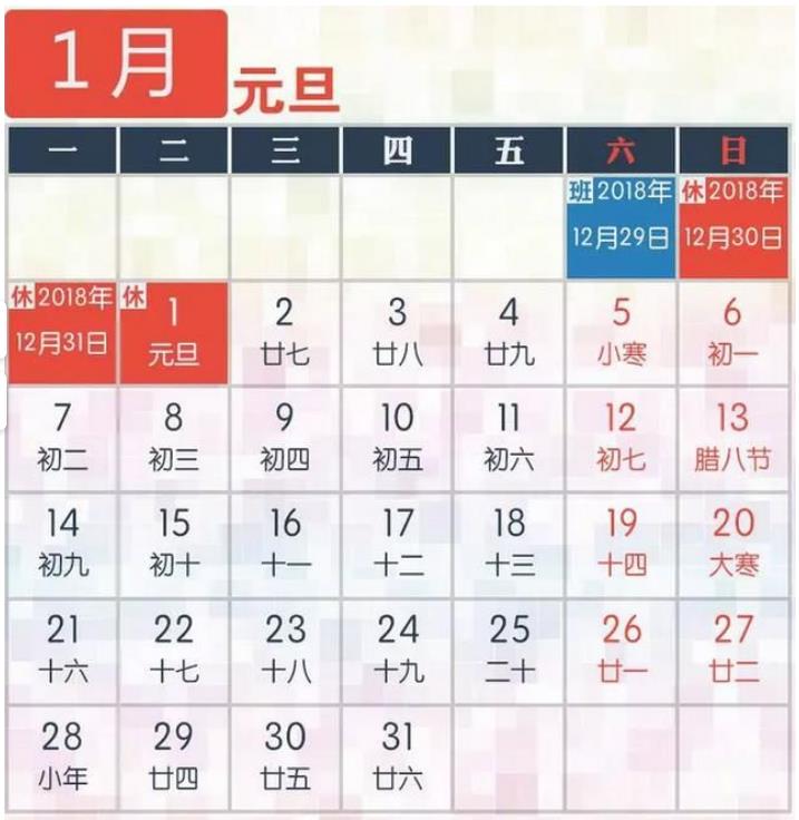 調休安排:2018年12月(yuè)29日(星期六)上班。