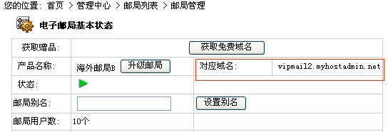 注:首先需要在業務管理(lǐ)-郵局管理(lǐ)處查到郵局對(duì)應的(de)域名.如mail2.myhostadmin.net,(注意,該值以實際查到的(de)爲準,mail2僅供參考) |