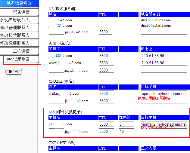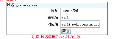 4.在主機名處輸入mail,對(duì)應值處輸入我司郵局對(duì)應的(de)域名. 5.回到解析界面後再點擊"增加郵件".