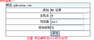 6.點擊"增加郵件"後将出現MX記錄增加框口,如下(xià)圖: