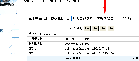 2.點擊"DNS解析管理(lǐ)",有時(shí)也(yě)叫"DNS解析",進入類似于如下(xià)界面: