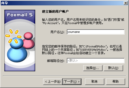 接著(zhe)根據提示,輸入在Foxmail中管理(lǐ)帳号的(de)“用(yòng)戶名”,如:“yourname”,然後點擊“下(xià)一步”;