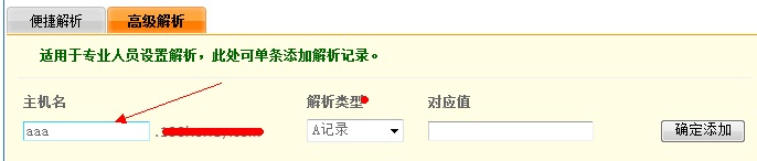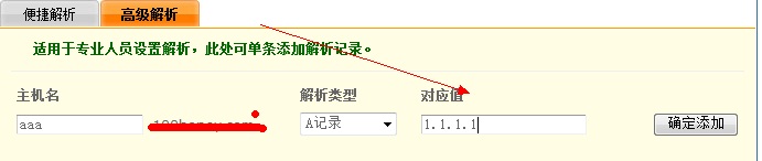 AAA就是他(tā)的(de)2級域名 做(zuò)下(xià)對(duì)應值 解析 例如 1.1.1.1