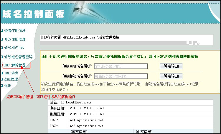 注:星外的(de)獨立管理(lǐ)面闆也(yě)可(kě)以進行域名管理(lǐ),登陸地址爲:http://您的(de)域名/hostadm/