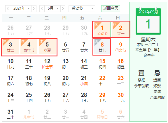 2021年五一勞動節放假時(shí)間安排